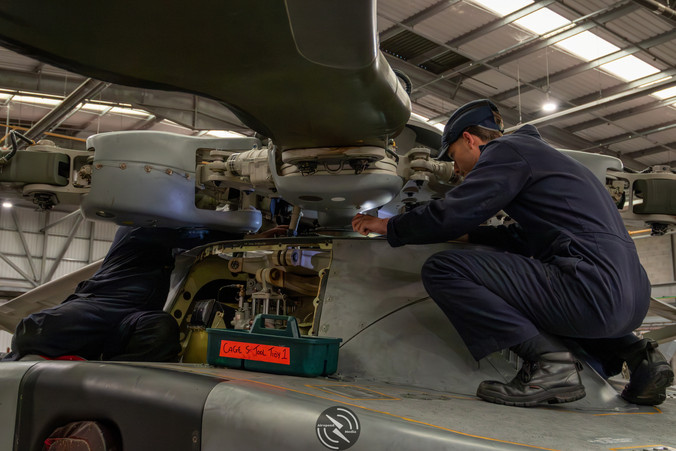 ‘Post sortie, the aircrew will sign the aircraft back in and they will have a conversation with the watch chief, and avionics and mechanical supervisors. If there are any issues with the aircraft, these will get recorded in the aircraft documentation. From that we will do fault diagnosis and change components to rectify the fault along with servicing the aircraft.’ stated air engineer Chief Petty Officer Michael Hay.